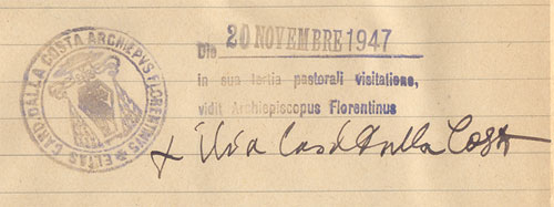 Particolare: Firma del Cardinale Elia Dalla Costa