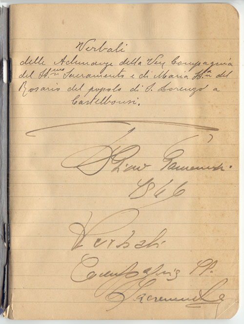 Dal quaderno dei verbali della Compagnia del SS. Sacramento